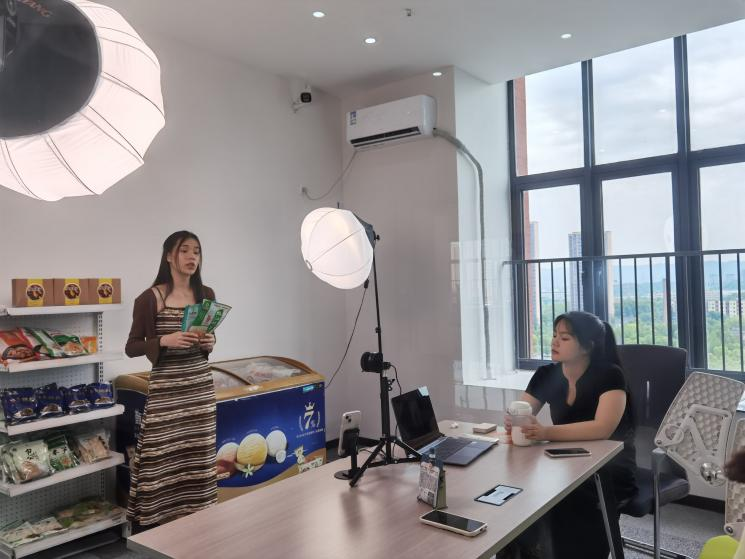 近日,为响应职业教育活动月的工作要求,并深化校企合作、促进产教融合,我院与深圳点淘网络技术有限公司(淘宝直播)联合举办的“新媒体与电商直播”校企联合教学项目,在职业教育领域再结硕果。该项目以淘宝直播为平台,涉及移动电子商务(专本贯)一班和二班共计89名学生,于2024年5月19日在Kaiyun官方网站登录入口科技楼8楼“点淘直播实训基地”成功举办了“直播带货展示”活动。