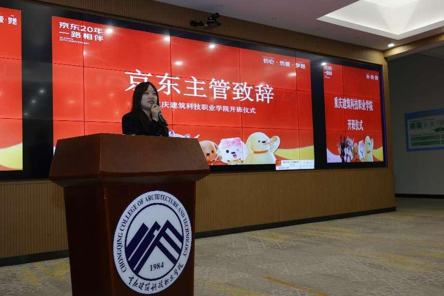 最后,企业对本次培训期间表现优秀小组进行了表彰,并由优秀学生代表余勤上台发言,感谢学校提供了京东这个优秀的实训平台,也感谢企业主管对她的指导和帮助,表示一定会不断努力充实自己,实现自我价值。