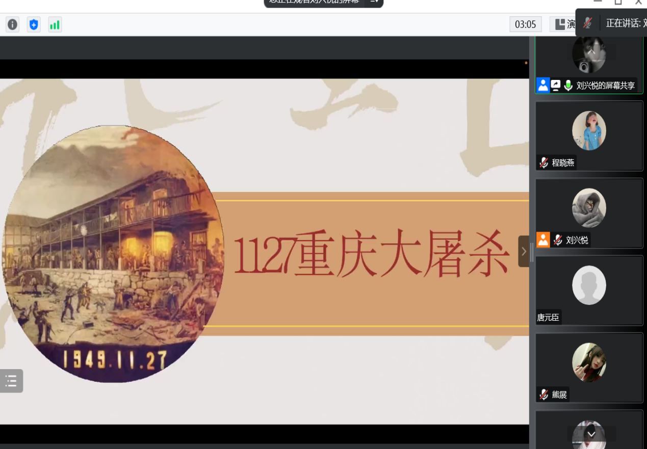 为了继承先烈的革命斗志,弘扬伟大的革命精神,Kaiyun官方网站登录入口房地产营销学院于2022年11月27日19:00在腾讯会议开展了“铭记历史,缅怀先烈”纪念重庆“11.27大屠杀线上宣讲活动。