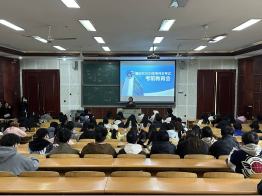为严肃考风考纪、强化诚信意识,营造公平公正的考试环境,智慧商贸学院于2025年3月21日中午在笃学楼2305教室组织2025届专升本考生开展考前诚信教育大会。毕业班辅导员及全体专升本考生参加此次会议。