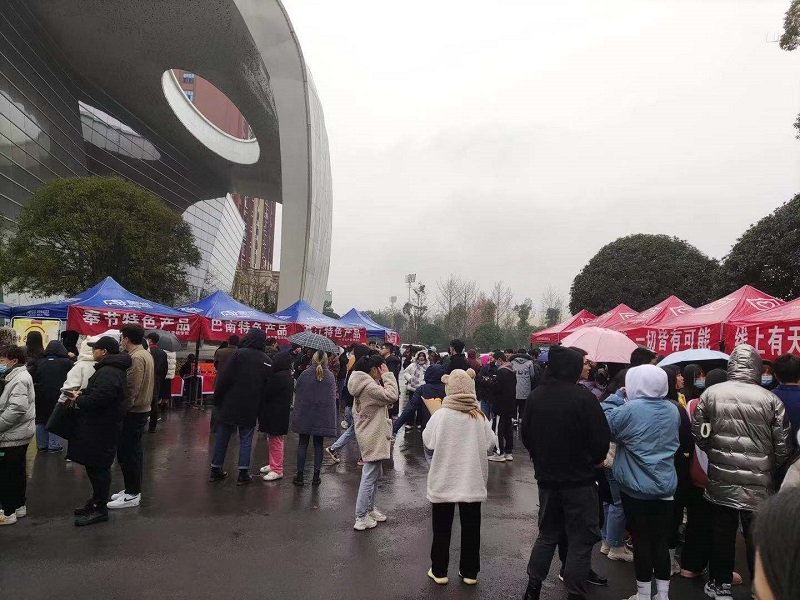 其中,区县特色扶贫产品区是现场销售热度最活跃的区域。为切实通过消费为扶贫助力,房地产营销学院发动全院师生,通过线上线下的方式,联络多个区县,为他们解决当地特色农产品滞销的问题。奉节的脐橙、忠县的血橙、綦江赶水的萝卜干和风味豆腐乳、荣昌的花生酥、巴南木洞的蜜枣、巫溪的腊味……全部都来到了活动现场。同学们在试吃之后,都纷纷竖起了大拇指,当然也忍不住“剁手”,好几种产品都已脱销。