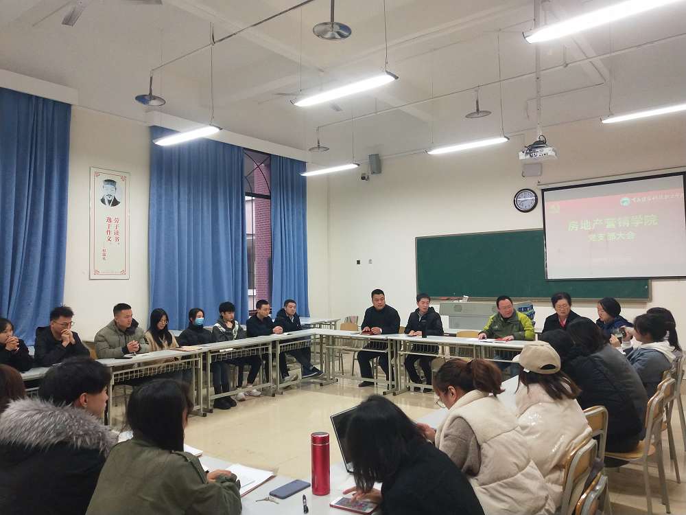 2020年11月26日下午,房地产营销学院党支部在3407教室召开了“学院支部党员大会”,支部教师党员、学生预备党员及入党积极分子参加了会议。
