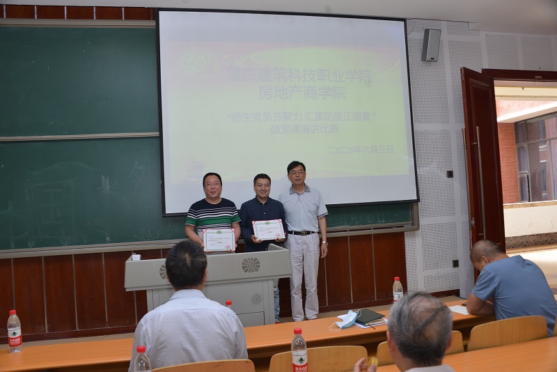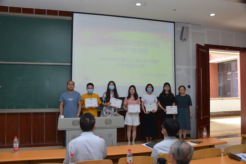 为深化“不忘初心 牢记使命”主题教育,强化习近平新时代中国特色社会主义思想和党的十九大精神的学习,在广大师生中传递防疫抗疫正能量,6月3日下午1点30分,房地产商学院党总支以“师生党员齐聚力,汇集防疫正能量”为主题在笃学楼2305进行首届“微党课”演讲比赛决赛。校党委陈锦连副书记、党委组织部康刚部长、学生处冉小平处长、督导室张德新主任、党委宣传部高云部长、商学院周正辉院长以及商学院全体师生党员、预备党员及入党积极分子积极200余名师生参加了此次活动。