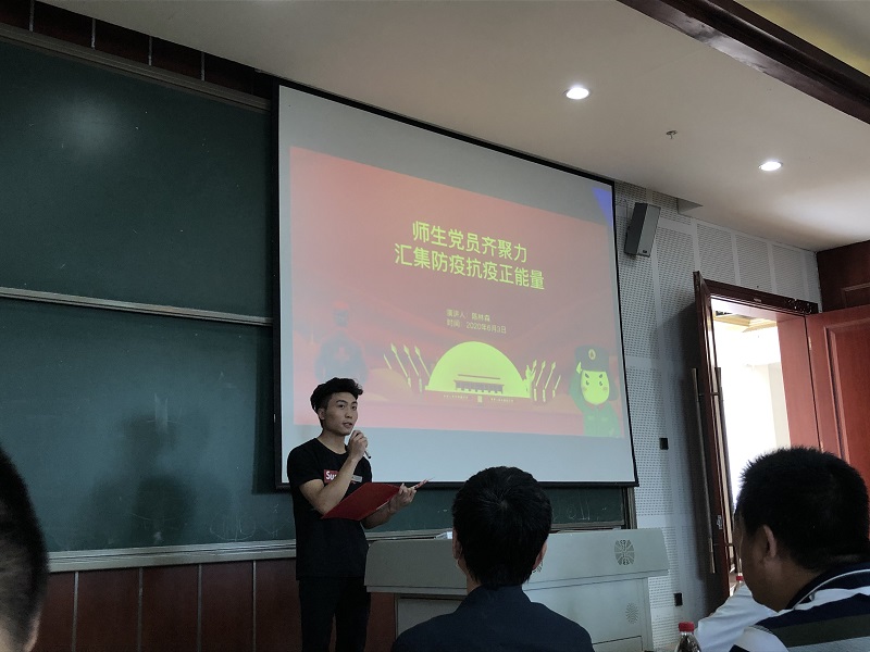 李俊杰同学通过讲述在抗疫战斗中建设火雷神山的党员、援鄂医护党员等“逆行者”们舍小家为大家、为人民筑起生命防护墙的生动故事,启迪在座大学生思考在疫情面前作为一名党员应怎样发挥先锋模范作用,启发大家深刻认识到遵纪守法、勤学多思,立志做一名有担当、有本领、有理想的新青年。