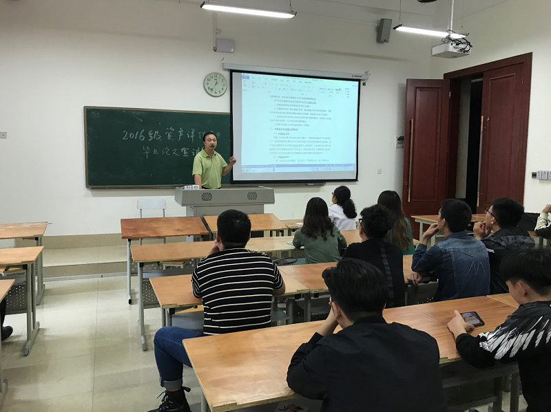 9月26日,商学院资产评估与管理教研室组织学生在2401教室开展2016级资产评估与管理毕业论文宣讲会。资产评估教研室主任褚志姣、资产评估专任老师何一舟、林鑫、鲜颖、陶怡然、詹娟和陈小雨参加了宣讲会。