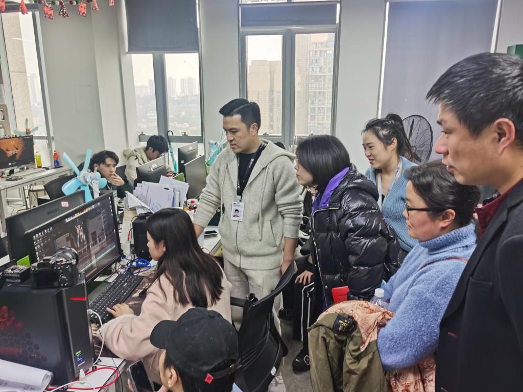 随后,公司总经理带领周旖院长一行参观了公司的各个部门,包括直播工作室、后台控制室和短视频后期制作等部门。通过参观,更加深入地了解了公司的业务范围和运营模式,对公司的专业化、规范化、高效化运营给予了高度评价。