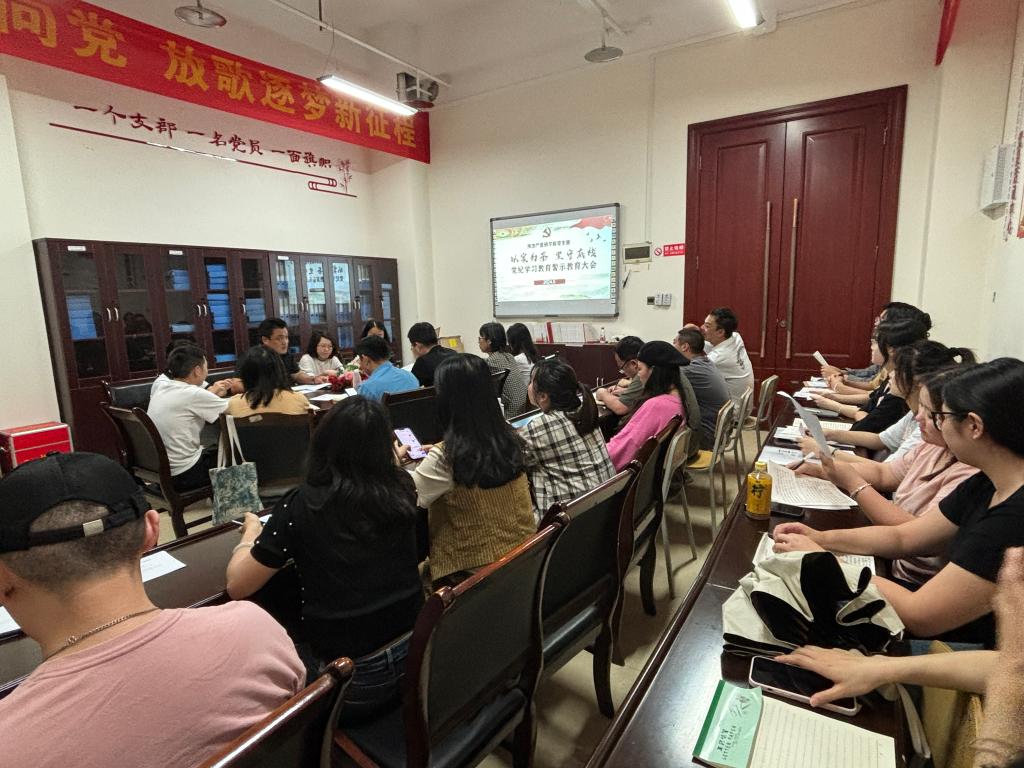 2024年5月22日,房地产营销学院党支部全体党员在笃学楼3412开展了党纪学习教育警示教育大会,会议由学院党支部书记孙小川主持。