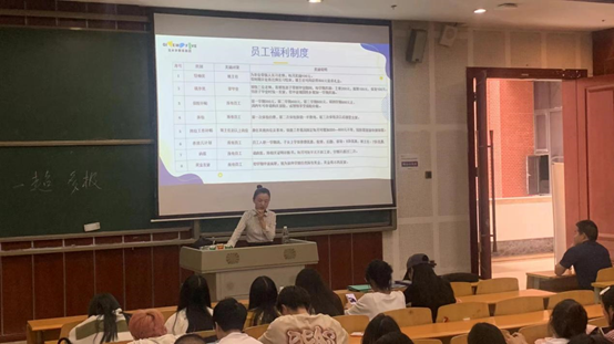 招聘宣讲会上,张园长作为戈米孚教育集团的代表人,向在场的学生们介绍了戈米孚教育集团企业文化、发展历程以及未来的战略规划,同时,详细讲解了企业的用人需求、职位职责、福利待遇和晋升通道等关键信息,为学生们提供了清晰明确的职业发展方向和岗位选择参考,帮助学生们对即将踏入的职场有了更为清晰和全面的认识。宣讲结束后,同学们积极与张园长进行交流,主动咨询招聘信息,并递交了简历等材料,现场氛围热烈