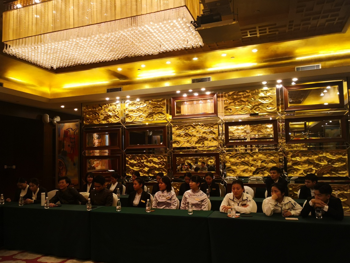 管理学院酒店管理专业目前有二十名同学在国贸格兰维大酒店实习,他们分别在客房部、礼宾部、总机、前台、宴会厅、西餐厅、中餐厅、宾客中心、健身中心等不同部门和岗位上进行实习锻炼。走访期间,在酒店的大力支持下,巫院长一行同学生们开展了座谈会。会上,各位领导和老师代表学校向同学们表达了深切的关心和真挚的问候,同学们踊跃发言,分享了各自在实习岗位上的经历和感悟,大家表示会格外珍惜这次实习锻炼的机会,在各自岗位上虚心求教,掌握更多专业技能。随后巫院长等各位领导和老师对同学们的吃苦耐劳和坚持不懈的精神表示充分的肯定,并鼓励同学们认真履行实习期间的工作要求,不断提高实践能力,为将来就业打下坚实基础。