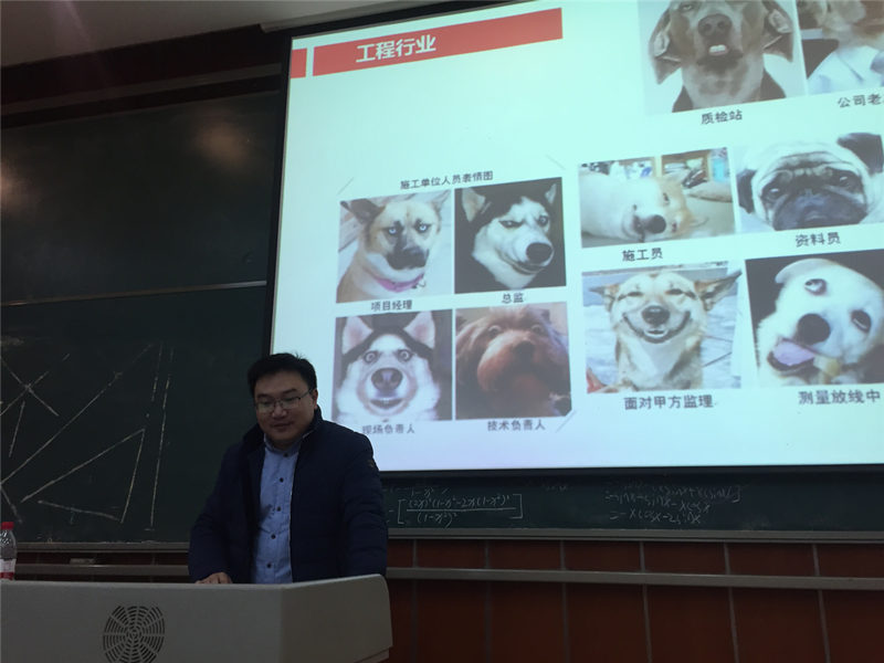 黄操老师毕业于重庆交通大学大学,硕士研究生,高级工程师,一级建造师,注册监理工程师,有7年的工程管理从业经验,曾任林同棪(重庆)国际工程技术有限公司生产技术组主任、项目负责人;重庆市地产集团北公司规划工程部主管,市重点项目负责人。他从工程建设实际出发,结合自身工作经验以幽默诙谐的语言,图文并茂地向同学们展示了工程建设的流程,描述了行业的现状和未来就业形势,阐述了工程企业对员工的素质要求,同时也谈到了毕业多年的工作感悟,告诫同学们要脚踏实地地学习理论知识,积极考取各种工程类的职业资格证书,为今后就业打下坚实的基础。