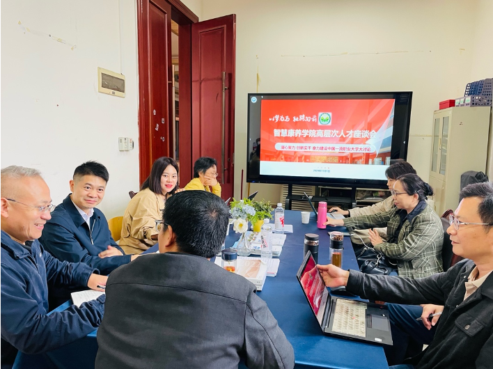 11月1日,智慧康养学院组织开展“建设中国一流职业大学大讨论”之“活动四-议发展” 高层次专家座谈会,智慧康养学院周福亮院长主持会议,刘轶副院长、庹永贵博士、张涛教授、王娟教授,雷红伟教授、黄熙雯博士、季爱玲博士、晏琳博士参加座谈会,并就“一流职业大学的建设”展开热烈讨论。