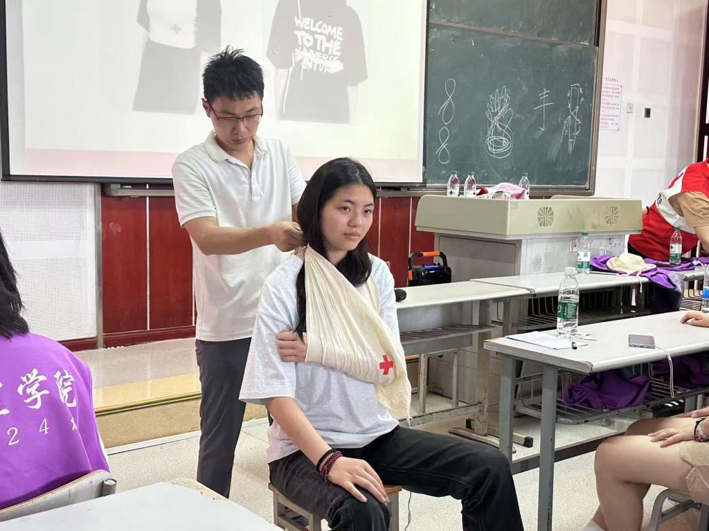 2. 创伤救护四步法:利用三角巾、绷带完成头部、手臂、关节等部位的止血包扎,模拟交通事故、运动伤害等不同场景;