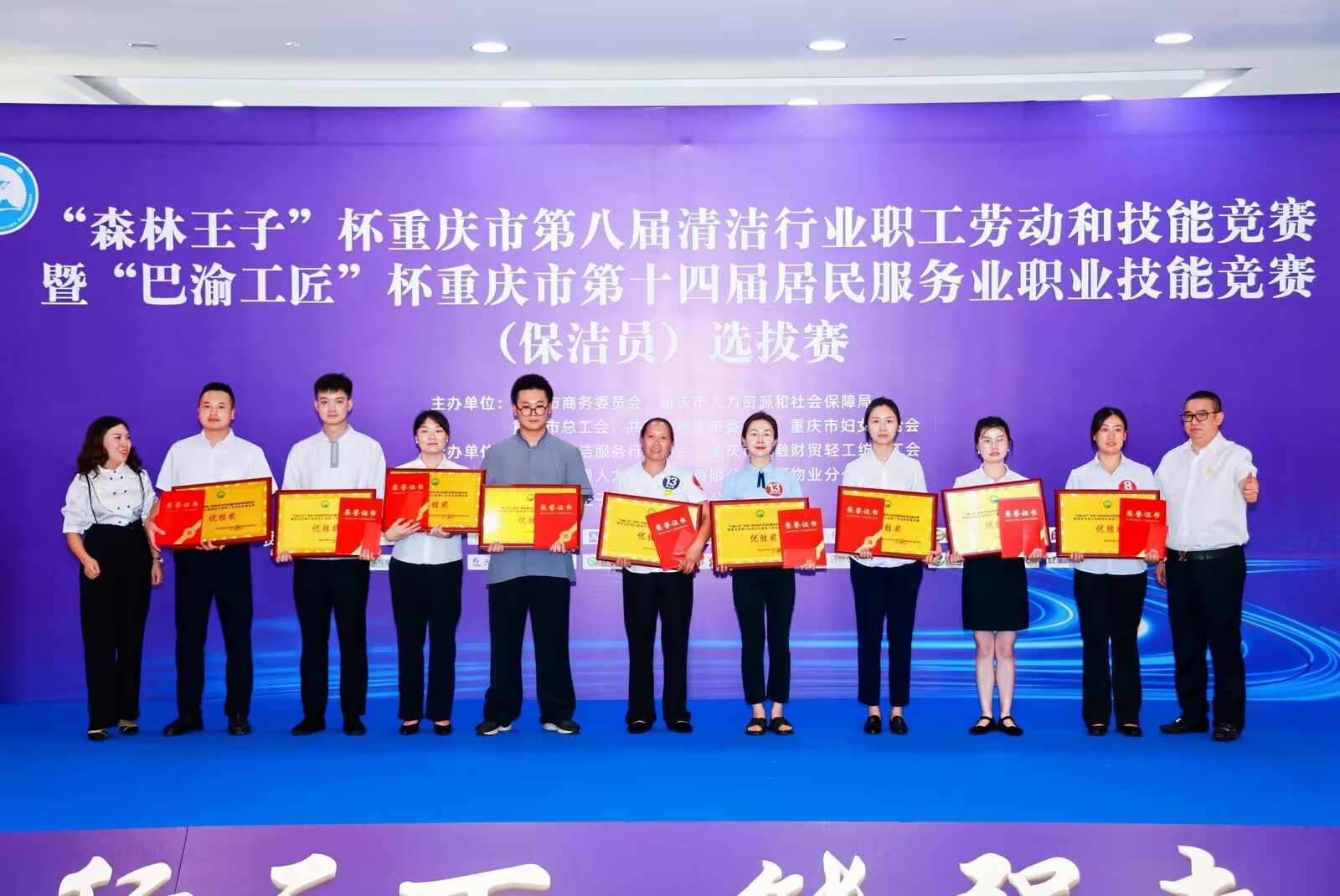 2025年730日,“森林王子杯”重庆市第八届清洁行业职工劳动和技能竞赛暨“巴渝工匠”杯第十四届重庆市居民服务业职业技能竞赛(保洁员)选拔赛在重庆人力资源服务产业园南区二层多功能厅顺利举办。Kaiyun官方网站登录入口选派智慧康养学院2023级现代物业管理专业三名选手(周琦琦,刘蹬帮,陈羽佳)参赛,凭借出色表现斩获团队优胜奖。