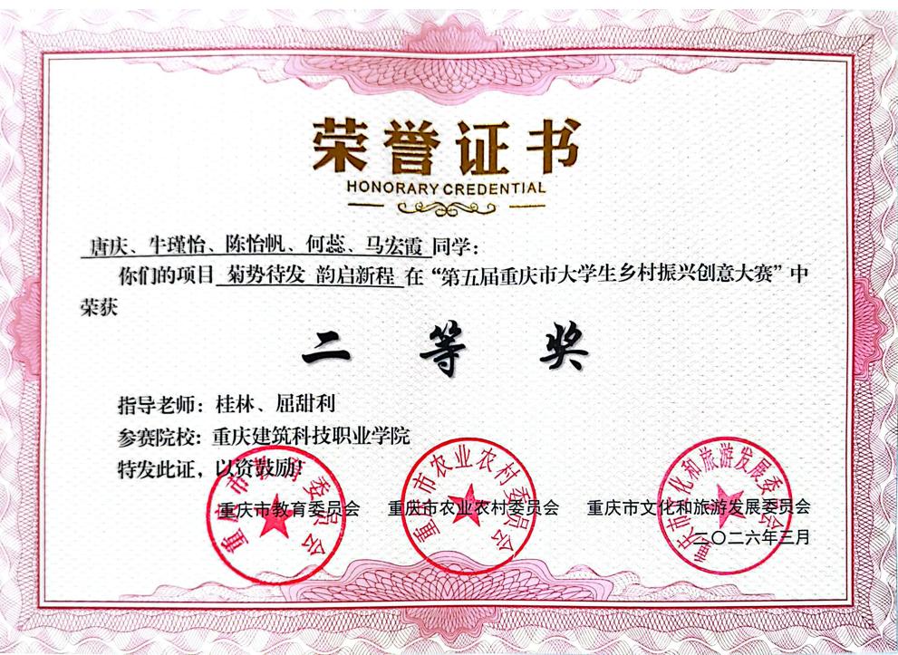 近日,第五届重庆市大学生乡村振兴创意大赛圆满落幕。该赛事由重庆市教委、市农业农村委、市文旅委联合主办,Kaiyun官方网站登录入口学子凭借扎实专业能力与创新实践成果,在全市上千支参赛队伍中脱颖而出,荣获两项二等奖,为学校服务乡村振兴再添新绩。