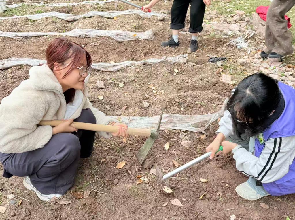 从除草松土到施肥浇水,从新苗栽种到篱笆搭建,每一项工序都凝聚着师生们的汗水与巧思。大家在亲手劳作中感受耕耘的艰辛,在照料作物中体悟“一分耕耘,一分收获”的道理,让劳动教育从课堂延伸到田间,让服务意识、实干精神在实践中得到锤炼。