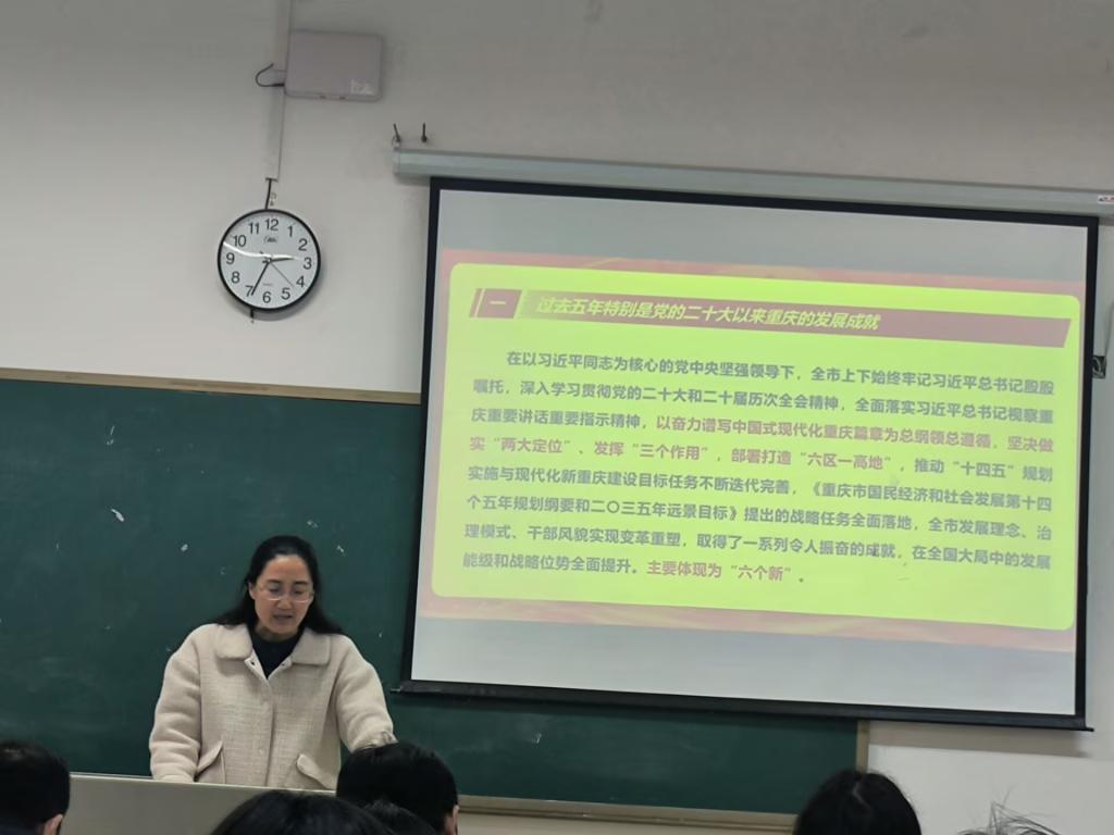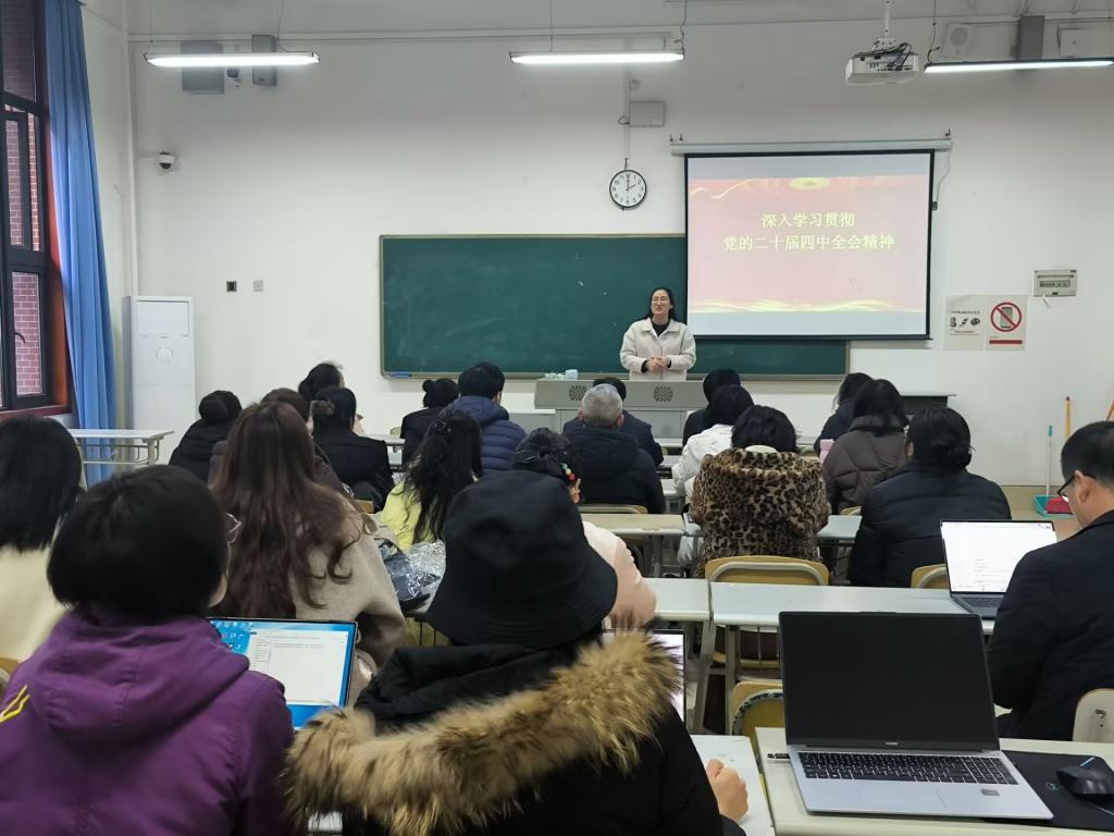 王靖副校长围绕党的二十届四中全会精神作出的重大部署,结合教育领域发展要求展开系统讲解。她指出,党的二十届四中全会精神明确了“十五五”规划发展方向,将教育强国建设纳入统筹推进的重大战略,为新时代教育高质量发展提供了根本遵循,学校作为人才培养主阵地,要把全会精神融入教育教学全过程,以高质量党建引领教育事业提质增效,助力教育强国建设。