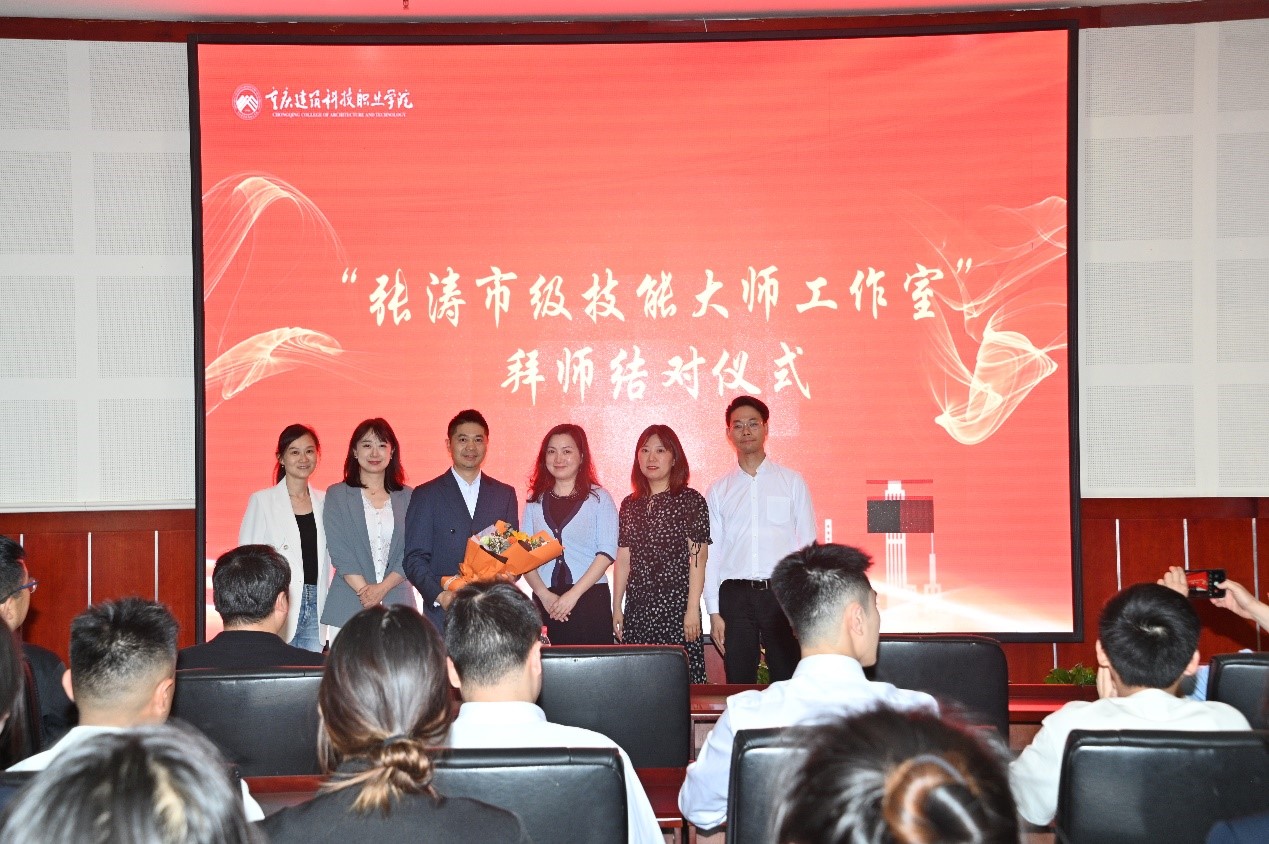 建筑管理学院院长助理耿青青,酒店教研室主任刘轶及教研室全体教师参加了此次拜师仪式,重庆市旅馆业协会会长钟声,张涛市级技能大师工作室领衔命名专家张涛,工作室专家组成员:重庆师范大学汪琳姝,重庆第二师范大学于世杰,重庆科技学院唐斌,重庆城市管理职业学院殷开明,重庆市女子职业高级中学旅游商贸系主任万春等行业企业专家亲临现场,共同见证了拜师全过程。