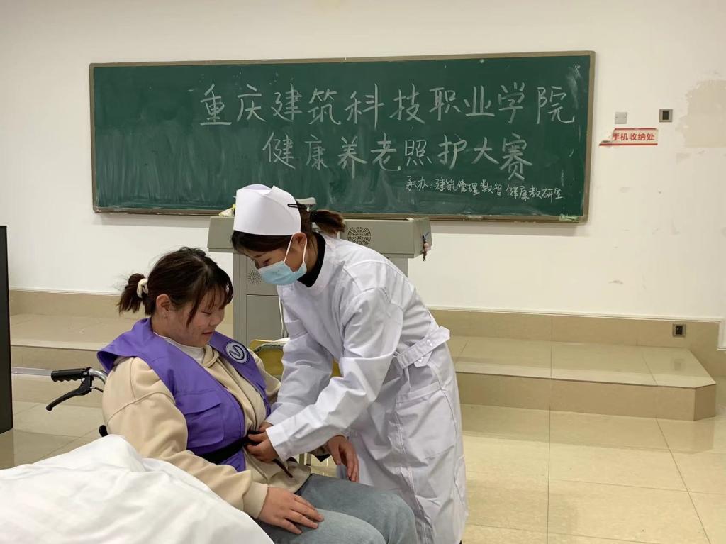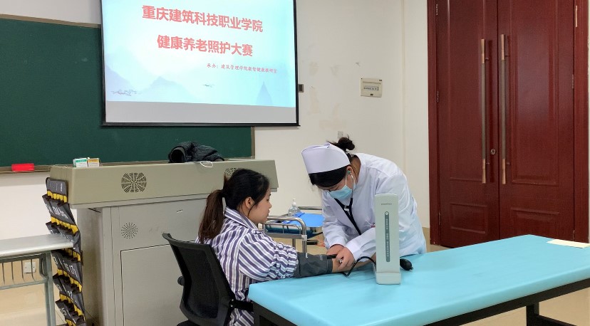 实际操作环节分为心肺复苏、老人轮椅转移外出、测量血压三个项目进行。每个项目都有严格的评分标准,要求各选手们在规定的时间内完成操作,并保证操作的准确性和安全性。