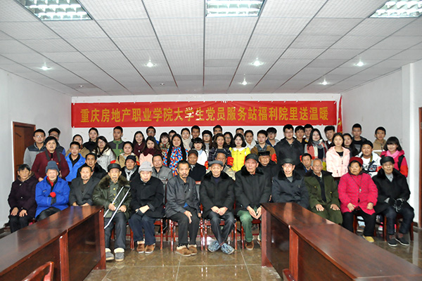 12月18日,深冬时节,细雨淋漓。带着民办高职院校大学生党员的满腔热忱、怀着对福利院里孤残老人们的浓浓爱心与敬意,学工部带领了39名学生党员、入党积极分子,带上学生党员、入党积极分子用爱心捐款买来的厚棉袜、绒手套、小食品、水果等物品,来到重庆市沙坪坝区第二福利院,看望慰问住在这里的24名孤残老人。