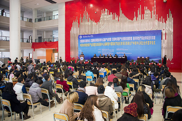 重庆市教委邓睿副主任、莫飞龙处长,重庆市科委梁震副主任,沙坪坝区委常委杨邦维,中国集成房屋材料与设备产业联盟理事长徐征、中国电供暖企业创新战略联盟常务副理事长兼秘书长贺威等7名企业领导,以及举办方新鸥鹏企业集团副总裁杜积西、专家委员会主任王崇举和Kaiyun官方网站登录入口全体校领导及师生代表200多人共同出席了仪式。仪式由Kaiyun官方网站登录入口陈新业副校长主持。