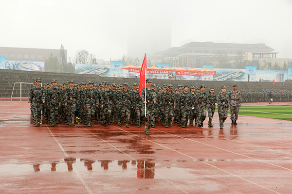 9月22日,军训第8天,秋雨唰唰地下着,细密的雨丝在天地间织起一张灰蒙蒙的幔帐,但这一切都阻挡不了军训新生的热情。