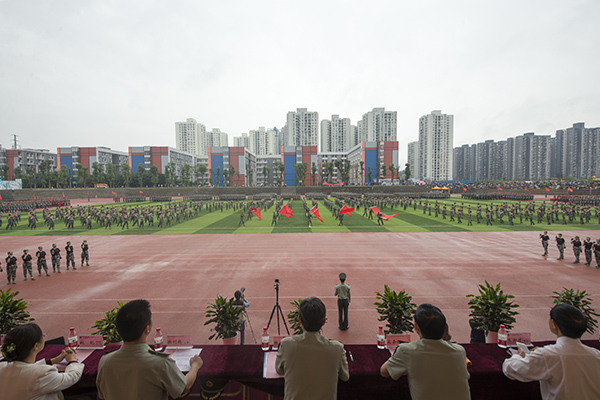 为表彰军训中表现突出的连队和个人,院长朱新才教授宣读了《重庆房地产职业学院2015级军训工作先进集体和优秀个人的表彰决定》,并向优秀连队、优秀教官、优秀教导员、优秀指导员、优秀学员颁发了优秀证书。随后,高飞跃大校讲话;院长朱新才教授向承训部队赠送了锦旗,对他们在新生军训中的辛苦付出和大力支持表示感谢。