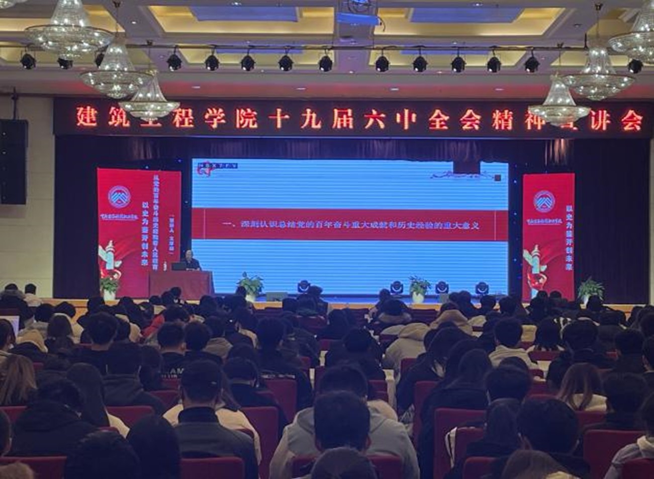 12月24日下午,Kaiyun官方网站登录入口党委书记文厚润到建筑工程学院作党的十九届六中全会精神专题宣讲。建筑工程学院党总支书记王尧、师生代表300余人在学术报告厅参会聆听。