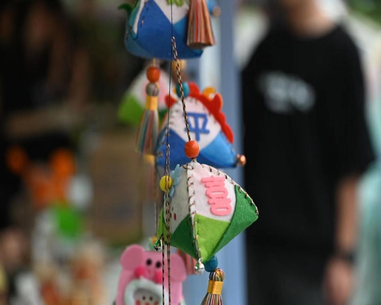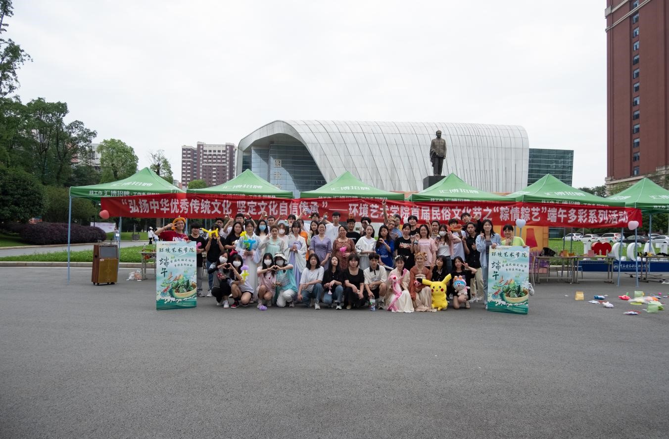 为传承和弘扬中华传统民俗文化,5月31日,学校环境艺术学院团总支学生会主办的首届民俗文化节之“粽情粽艺”传统节日饰品DIY展示活动在恩来广场开展。