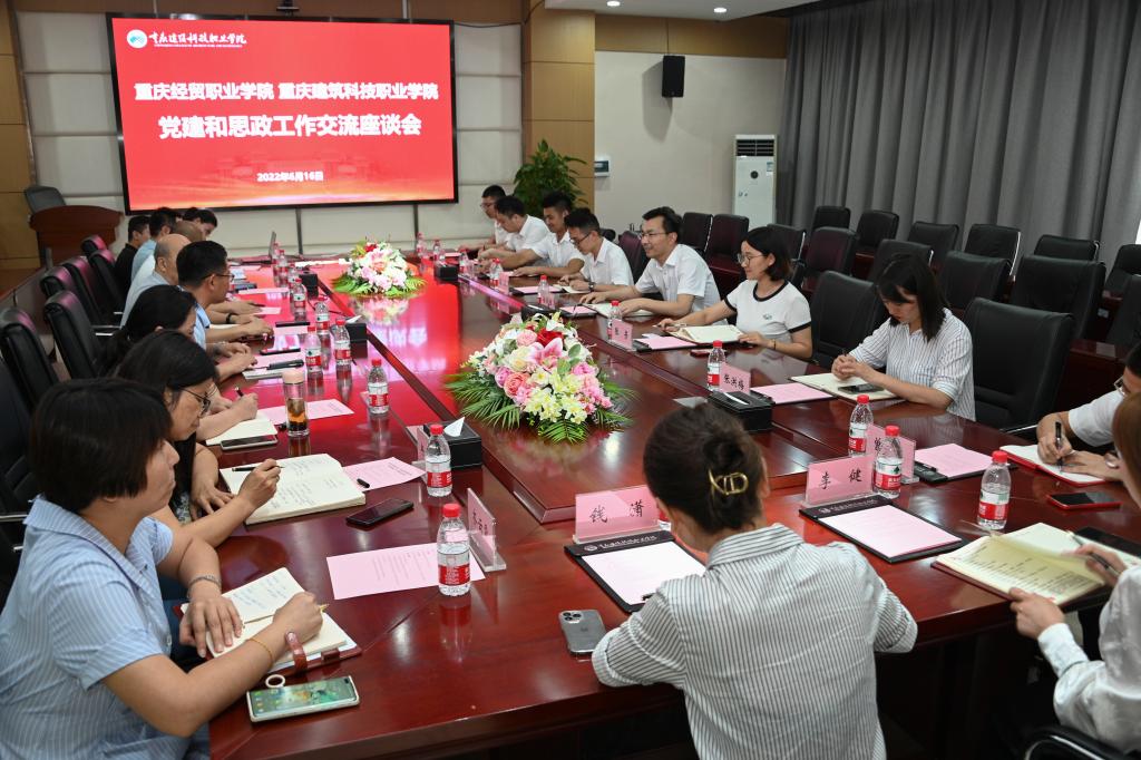 会上,李果副校长对Kaiyun官方网站登录入口党建与思想政治工作进行了交流展示,重点针对Kaiyun官方网站登录入口抓党建特色品牌、学生思想政治教育、学生自主管理等方面进行了交流。重庆经贸职业学院交流团一行针对党建队伍建设、学生日常管理、教育教学联动机制、双创工作开展等方面进行了交流。参会人员根据本职工作,开展了积极探讨,气氛热烈融洽。