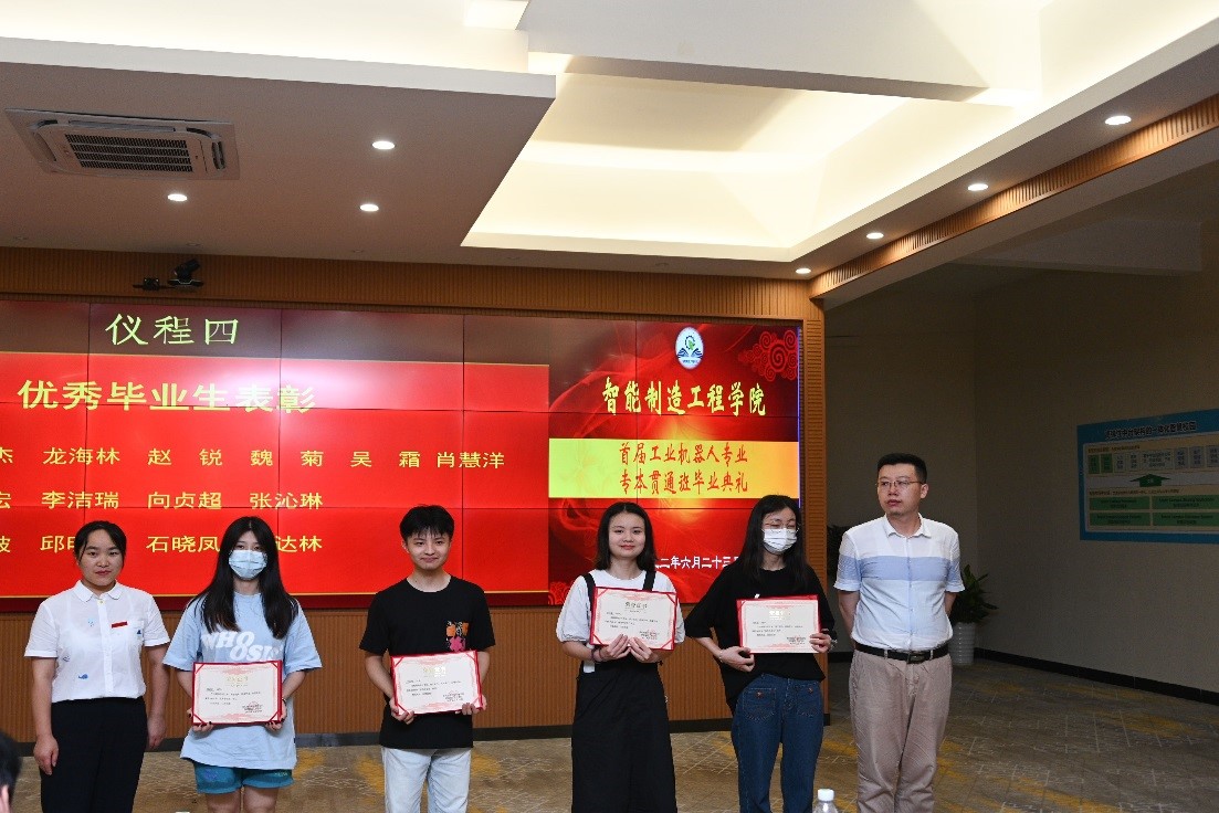 随后,学院院长陈亚娟宣读了工业机器人专业专本贯通班15名优秀毕业生名单,并颁发了荣誉证书。