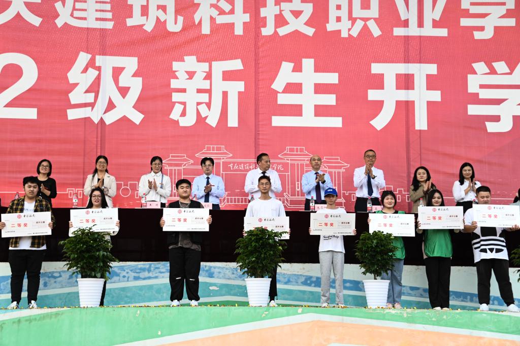 典礼上,学校为49名学业奖学金获得者进行了颁奖。教师代表栗新然老师现身说教,激励全体学生立足专业、学会思考、享受生活,做有担当的成年人!老生代表2021级建筑工程专贯本2班徐江同学从自己大学生活谈起,讲述了自己如何开启全新的起点,在有限的大学时光里,把握自己的人生方向,并坚持不懈为之奋斗的历程!新生代表2022级学前教育专业3班汪宸好同学代表全体新生庄严承诺要以“吹尽狂沙始到金”的毅力,严格要求自己,专心致志学习,担负起时代赋予的使命!