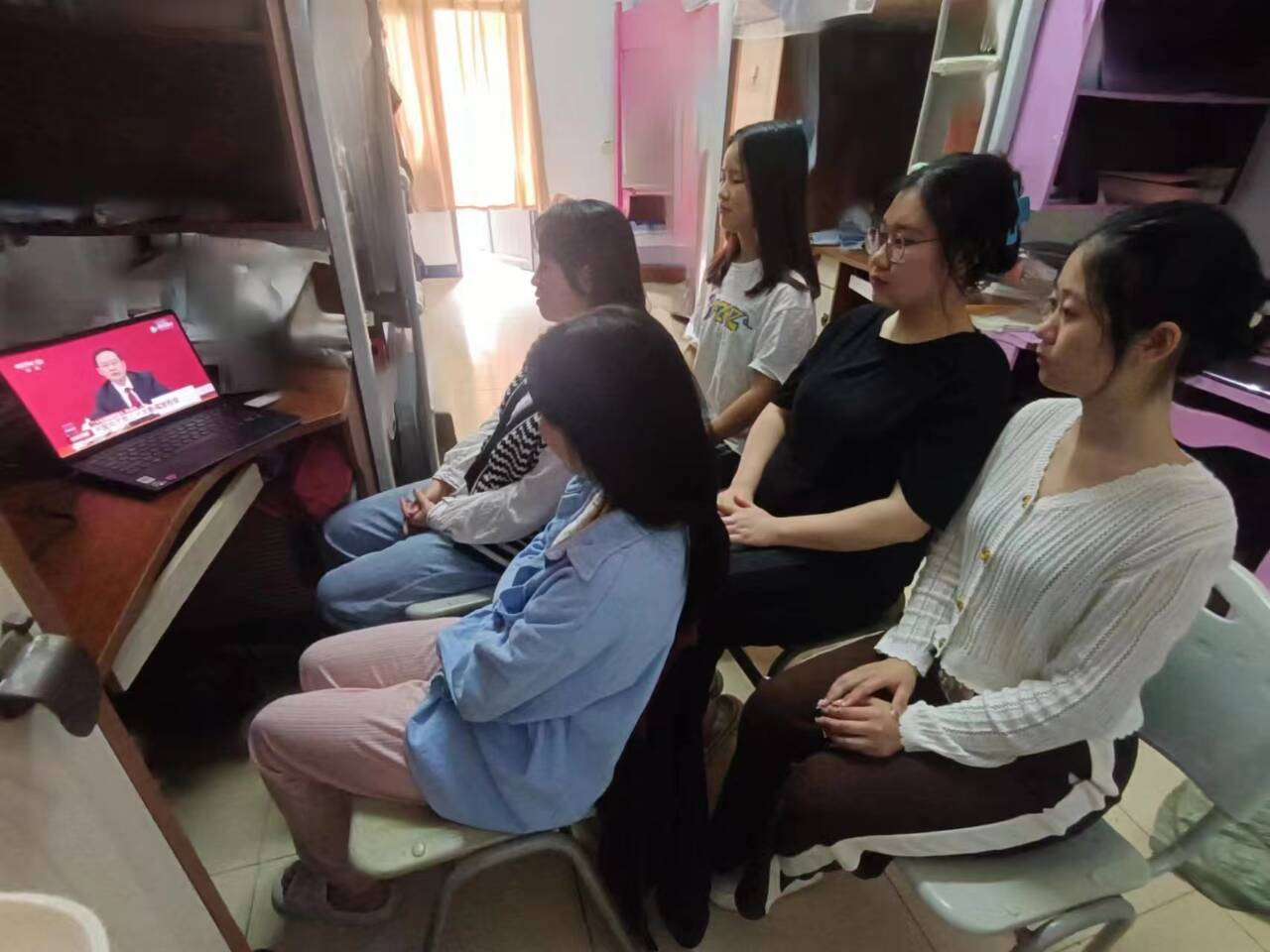 学生在宿舍观看二十大开幕会(二)