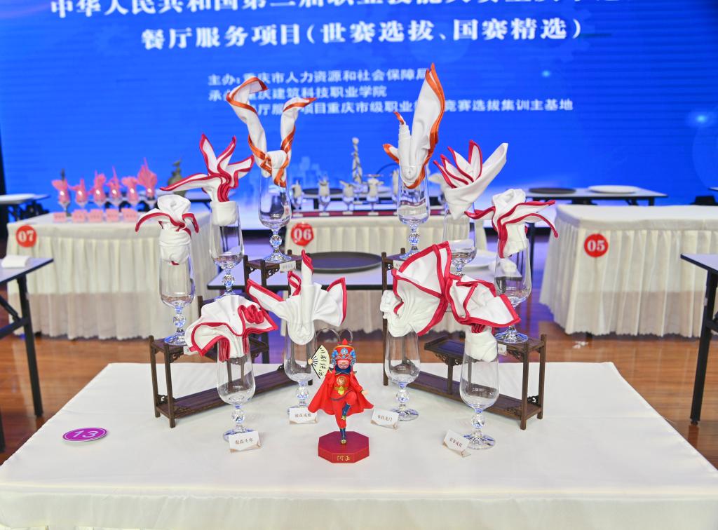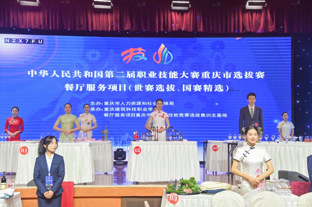 本次大赛分国赛精选和世赛选拔两个赛项,分别为全国技能大赛和世界技能大赛选拔赛发掘培育高技能人才,同时进行中国第二届职业技能大赛重庆市选拔赛餐厅服务项目竞赛。餐厅服务(国赛精选)项目围绕中式宴会设计、摆台、餐饮服务、折花展台等模块开展技能比拼;餐厅服务(世赛选拔)项目围绕西餐休闲餐厅服务、精致零点餐厅服务、酒吧服务等模块开展技能比拼。选拔赛将角逐出一等奖1名,二等奖2名,三等奖3名,前10名选手将纳入重庆市集训队进行强化训练并通过三个阶段性考核,最终选拔出重庆代表队伍参加全国技能大赛。