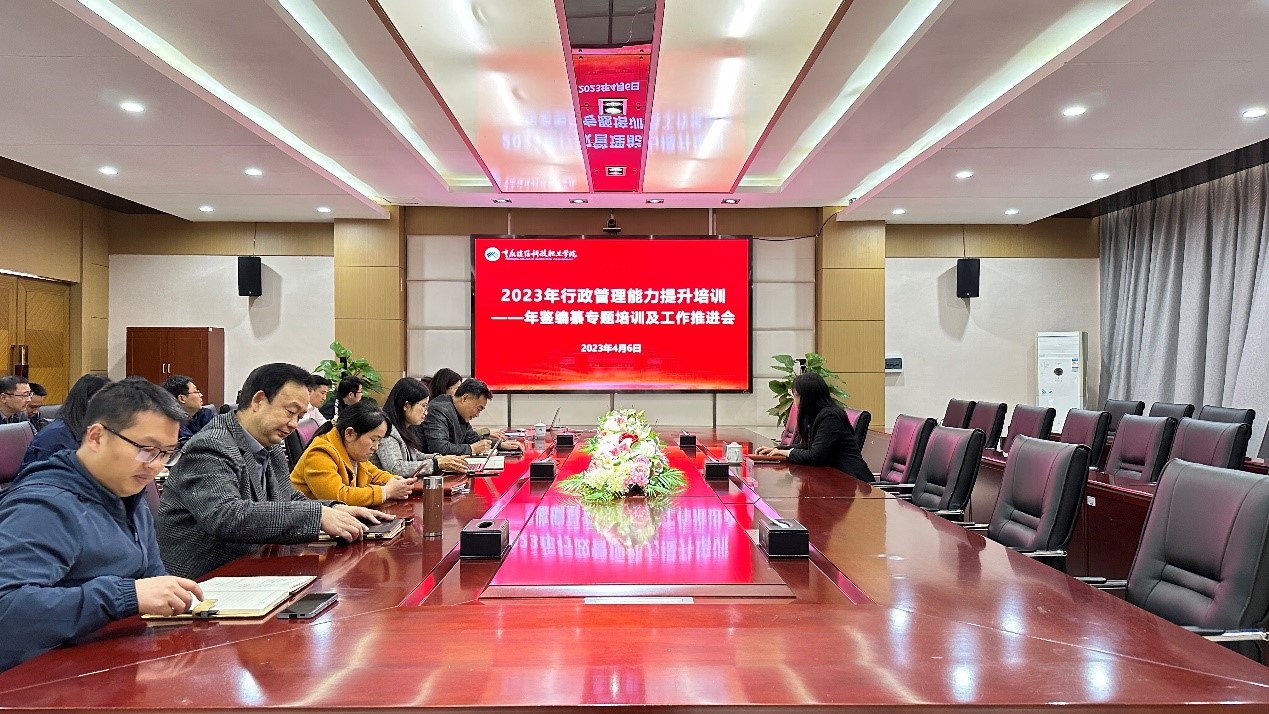 4月6日上午,学校在立德楼六楼会议室召开2023年行政管理能力提升培训暨年鉴编纂工作培训会。校长助理王靖出席会议并作工作部署,各二级单位负责人及年鉴撰稿人员近40人参加培训。学校党政办公室主持培训会。