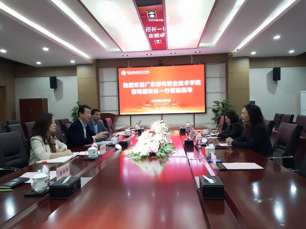 4月9日上午,广东邮电职业技术学院党委委员、副校长黎明以及培训事业部、现代学徒制教育学院一行莅临学校调研交流。学校副校长何培斌、教务处处长叶颖娟、房地产商学院院长彭汝伦、智能制造工程学院院长陈亚娟陪同调研。