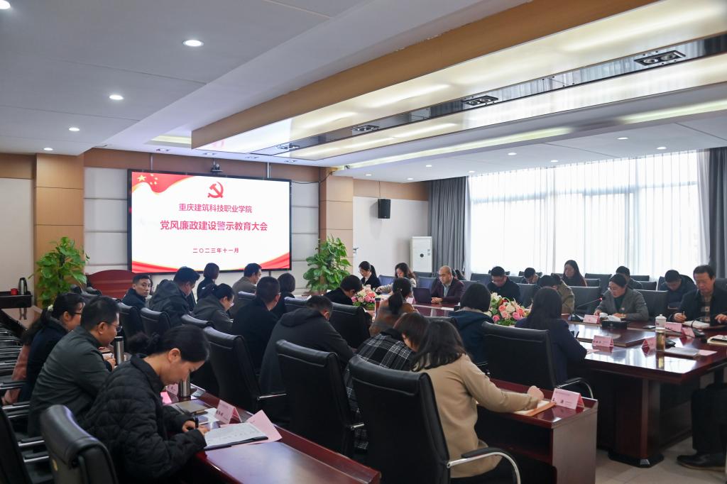 11月16日上午,学校在立德楼六楼会议室召开党风廉政建设警示教育大会,学校校长刘东燕、党委书记何光明,全体校领导、全体中层干部参加会议。
