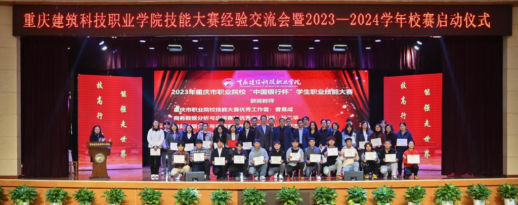 会上,李果副校长宣读2022-2023学年技能竞赛获奖情况。祝贺师生在上一学年中取得可喜可贺的成绩,实现了国赛、市赛奖项的历史性突破。同时,结合2023年学生职业技能大赛国赛获奖和重庆市职业院校“中国银行杯”职业技能大赛获奖情况,进行现场颁奖。共颁发国赛一等奖1项,国赛三等奖1项,市赛一等奖2项等共22个奖项.