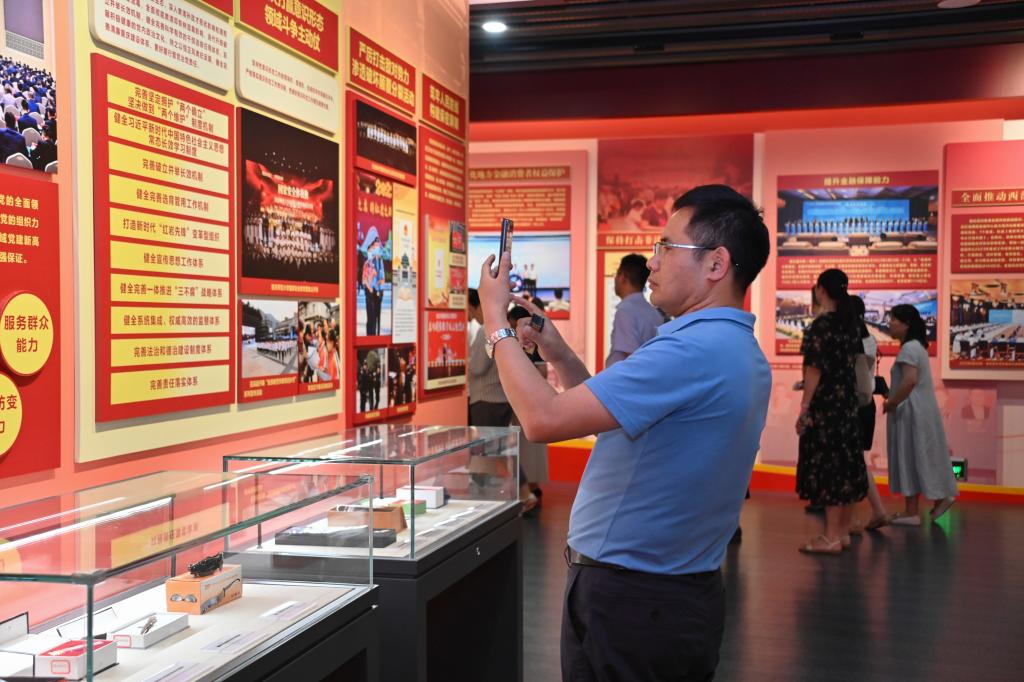 “总体国家安全观·创新引领10周年”主题成就展由重庆市委国安办会同三峡博物馆和相关市级部门主办,设置了总体国家安全观、“13665”全市国家安全体系构架、重点领域国家安全、国家安全教育、干部队伍建设5个单元,生动展现了重庆市贯彻总体国家安全观的工作进展及成效成果。中心组一行结合丰富的图片、资料和案例分析,系统学习了习近平总书记关于总体国家安全观的重要论述,全面了解总体国家安全观、国家安全法律法规,进一步树牢了国家安全意识、风险防范意识,增强了维护国家安全的责任感和使命感。