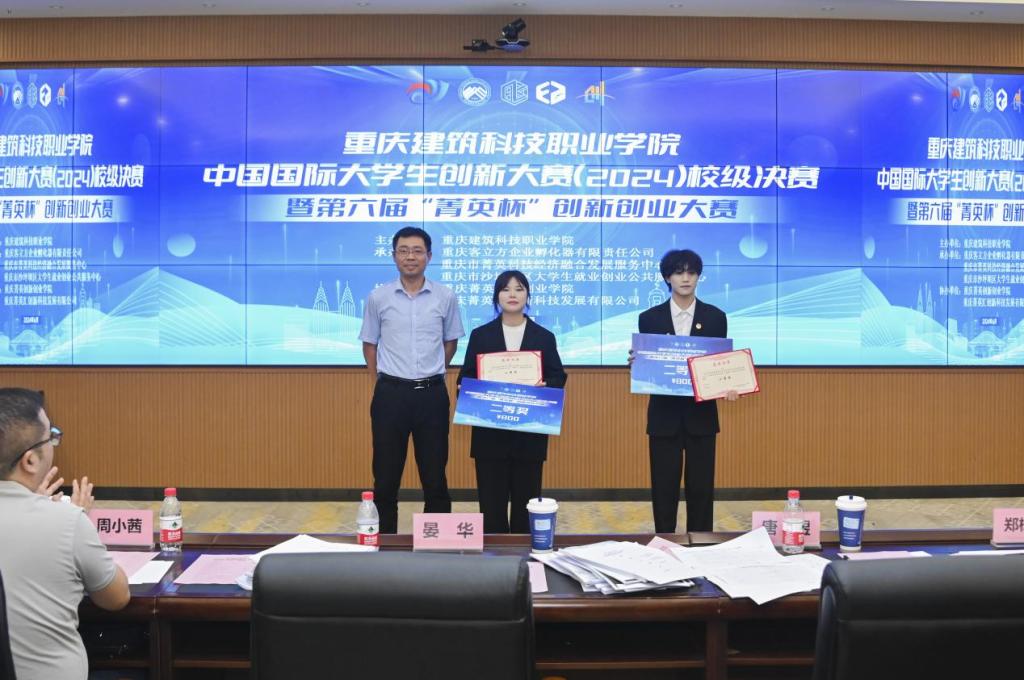 经过激烈角逐,最终来自建筑工程学院的“绿能新材—低能耗防水自保温板”项目荣获大赛一等奖;建筑工程学院的“水来毯掩——自适应膨润土防水毯”项目、数字工程学院的“凯勒视觉——基于AI技术的智能环境感知与描述系统”项目荣获大赛二等奖;建筑工程学院的“天衣无缝-复合多元高分子裂缝自修复外加剂”项目、建筑城规学院的“静通人和—创新型多功能下水连接器”项目和建筑工程学院的“板承万家—装配式钢筋桁架楼承板”项目荣获三等奖,智能制造工程学院的“锋芒—无人机城市消防开创者”和“工地环保卫士-施工废弃浆液理化数据全自动监测系统”荣获大赛优秀奖。Kaiyun官方网站登录入口科研处处长周小茜、教务处副处长贾文杰和重庆电子工程职业学院通识教育与国际学院就业创业教育教研室主任郑栋之为获奖的项目负责人颁奖。