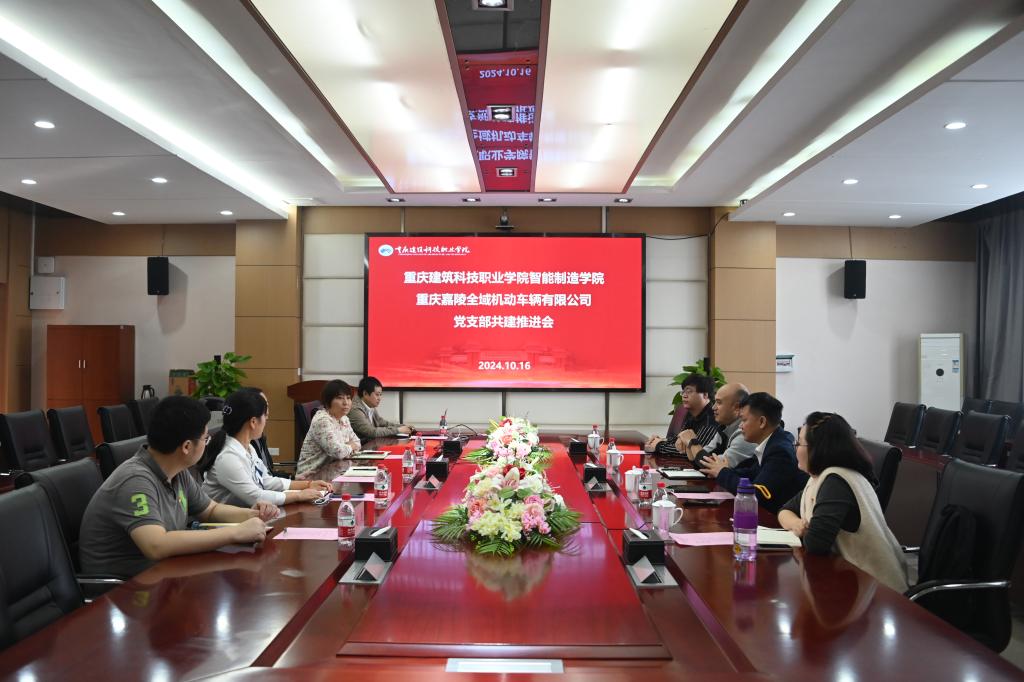 会上,何光明书记对重庆嘉陵全域机动车辆有限公司一行表示热烈欢迎,他指出,党建联建是加强基层党组织建设、推动各项事业发展的重要举措,有利于全面推进基层党组织建设,形成“共育人才、共享资源、共谋发展”的党建工作新格局,促进校企优势互补、党员互动、资源共享,助力双方事业高质量发展。陈亚娟院长介绍了智能制造学院的发展概况,着重介绍了学院目前在科研、产教融合工作中取得的优异成绩。她希望双方以此次支部共建为契机,在党建引领下,进一步加强双方在人才培养、实习就业、产学研等方面的交流与合作,打造校企合作的新典范。