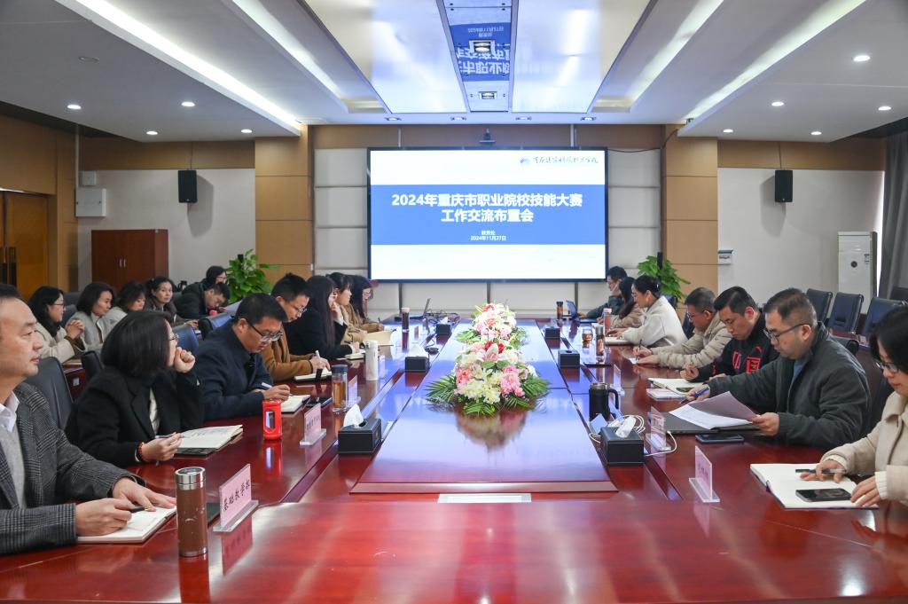 11月27日上午,学校在立德楼六楼会议室召开2024年重庆市职业院校技能大赛专项工作布置会。学校校长张进,副校长王靖和二级学院(基础教学部)、相关职能部门领导参加了会议。会议由副校长王靖主持。