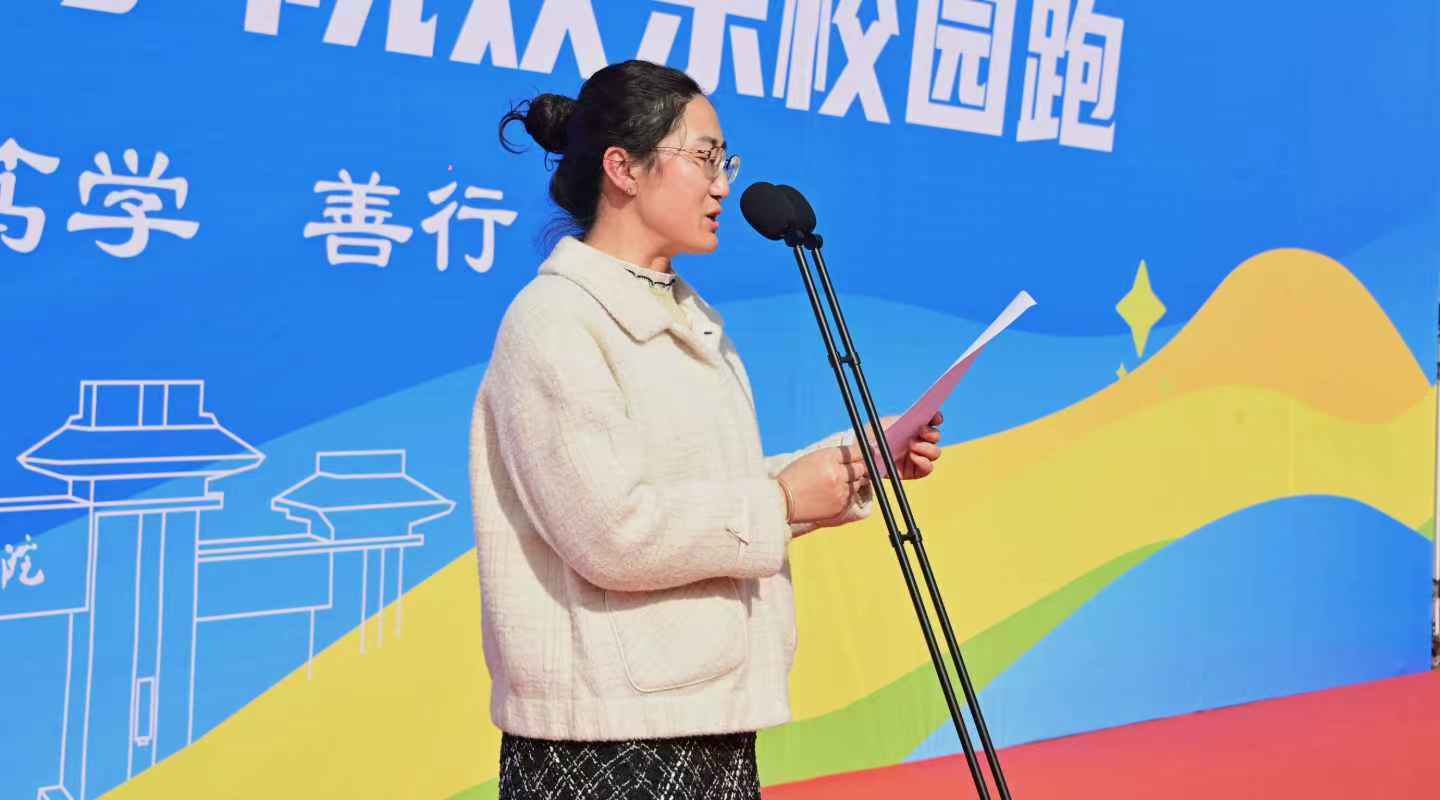 副校长王靖在致辞中鼓励同学们““以体育人、以体聚力,跑出风采、跑出健康、跑出建科学子的精气神”!