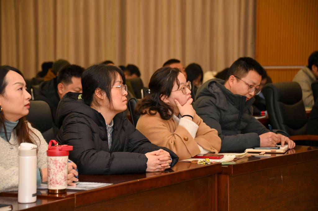 宣讲会上,周俊华副校长深刻阐述了全会召开的深远意义,强调党的二十届四中全会是在即将进入基本实现社会主义现代化夯实基础、全面发力的关键时期召开的一次十分重要的会议。随后,他围绕学习领会习近平总书记重要讲话精神和全会审议通过的《建议》,分六个方面作了系统梳理和深入解读,准确把握“十五五”时期在基本实现社会主义现代化进程中的重要地位,深刻领会“十五五”时期经济社会发展的指导方针和主要目标,全面理解“十五五”时期经济社会发展的战略任务和重大举措。宣讲既有理论高度,又紧扣当前实际,与会教师专注聆听、认真记录。