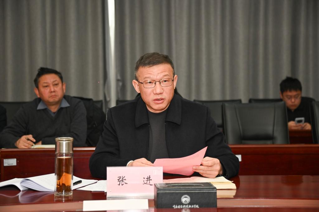 张进校长作了重要讲话。他指出,这学期职能部门和二级学院目标责任推进整体良好,完成情况比较满意。学校有两本教材入选国家规划教材目录,在2025年世界职业院校技能大赛旅游赛道中获得国赛铜奖,在第十五届全国大学生电子商务“创新、创意及创业”挑战赛常规赛国赛中斩获特等奖,荣获2025年职业教育重庆市教学成果奖特等奖1项、一等奖1项。但在重庆市第二轮“新双高”申报、“人人升本、个个成才”活动等工作中还有一定的差距,还需要大家加快进度、加大力度。
