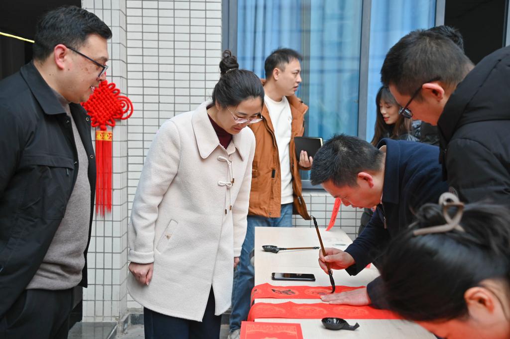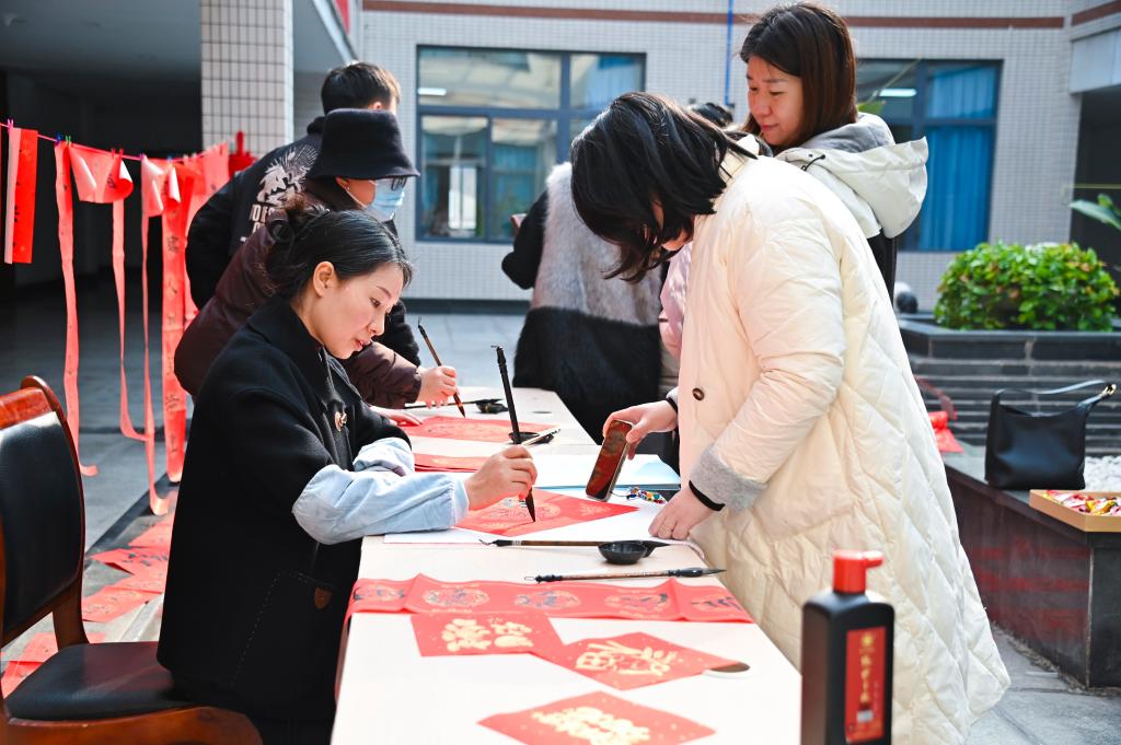 活动现场,年味十足。学校党委书记何光明与教职工们挥毫泼墨,以笔会友,以墨传情。大家将美好的祝愿凝聚笔端,一对对或苍劲有力或流畅秀美的春联跃然纸上,既有传统吉祥语,也有富含创意与时代感的词句,如“立德树人育英才 砥砺奋进谱新篇”,既展现了教职工们的书法才艺,体现了学校教职工对传统文化的传承与创新,也寄托了大家对新一年的美好期盼。