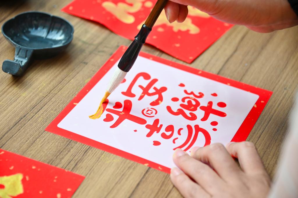 拓印体验同样备受青睐,大家先将模板平整放在红纸上,蘸取适量颜料均匀涂抹,待墨迹渗透后小心翼翼揭开,短短几分钟,一个个色泽鲜亮、纹理清晰的福字、生肖图案便跃然纸上。红纸上的“福”字搭配古朴纹理,尽显传统韵味儿。