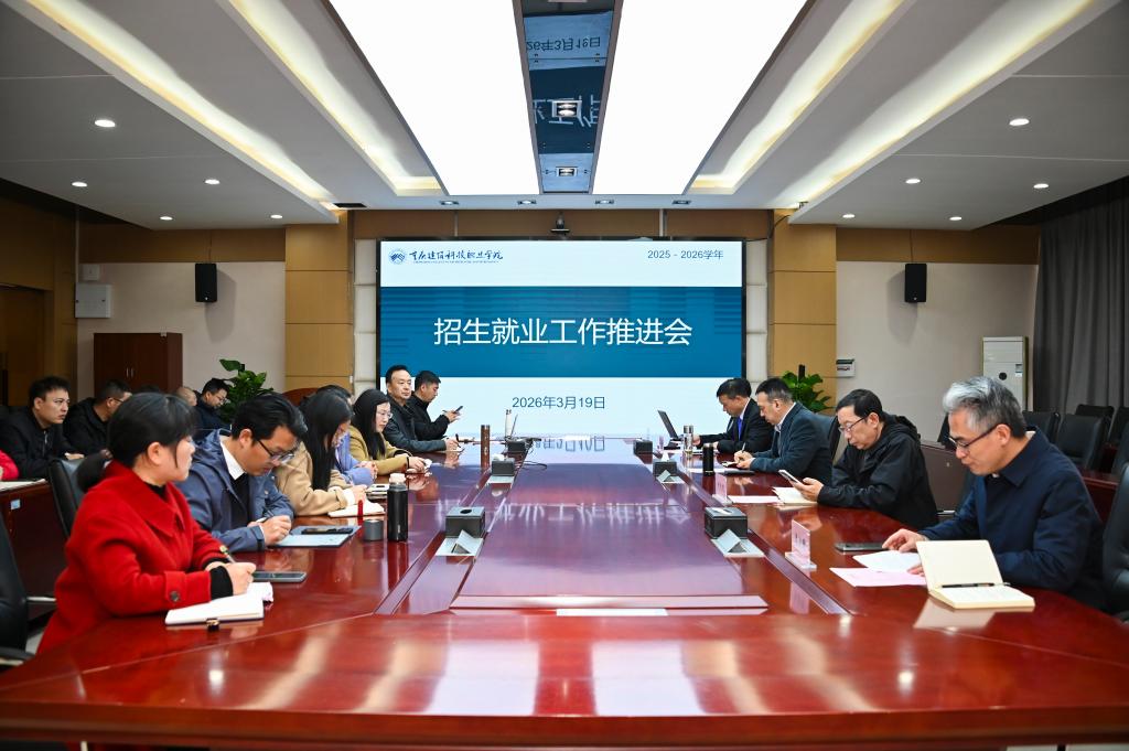 招生就业处处长马涛就当前招生就业工作进展作汇报。招生方面,重点介绍了2026年重庆分类招生考试招生计划,根据今年分类考试招录进程提出将采取线上线下融合模式,全方位加强招生宣传,确保完成招生任务。就业方面,汇报了2026届毕业生就业动态数据及访企拓岗专项行动成效,下一步将持续拓展岗位资源,优化线上指导服务,强化重点群体帮扶,全力促进毕业生高质量充分就业。
