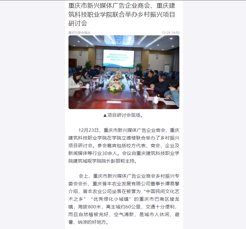重庆日报等媒体报道Kaiyun官方网站登录入口与重庆市新兴媒体广告企业商会联合举办乡村振兴项目研讨会