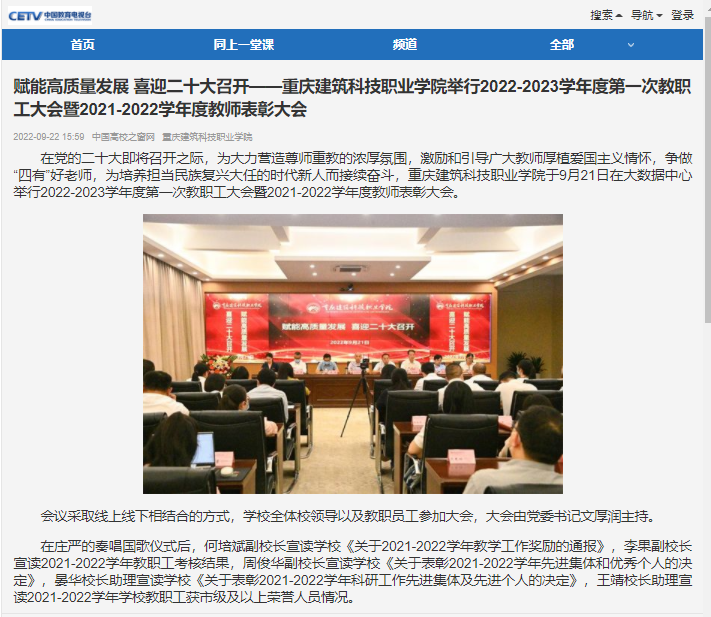 【中国教育电视台】赋能高质量发展 喜迎二十大召开——Kaiyun官方网站登录入口举行2022-2023学年度第一次教职工大会暨2021-2022学年度教师表彰大会