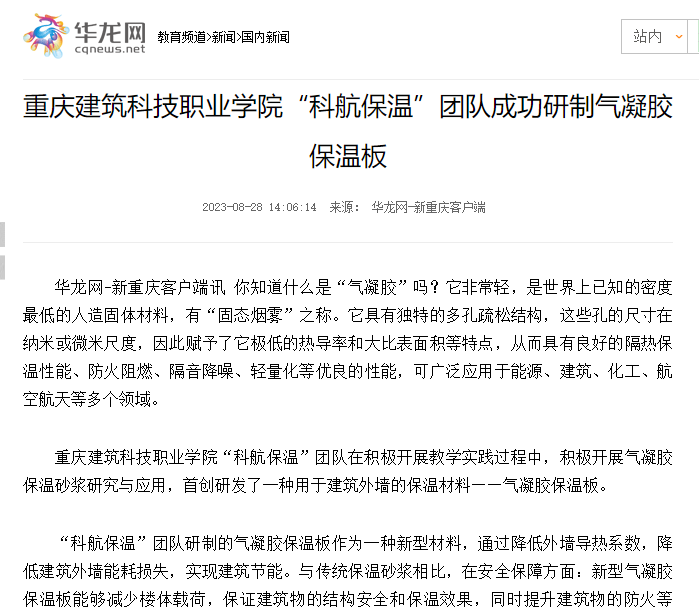 【华龙网】Kaiyun官方网站登录入口“科航保温”团队成功研制气凝胶保温板